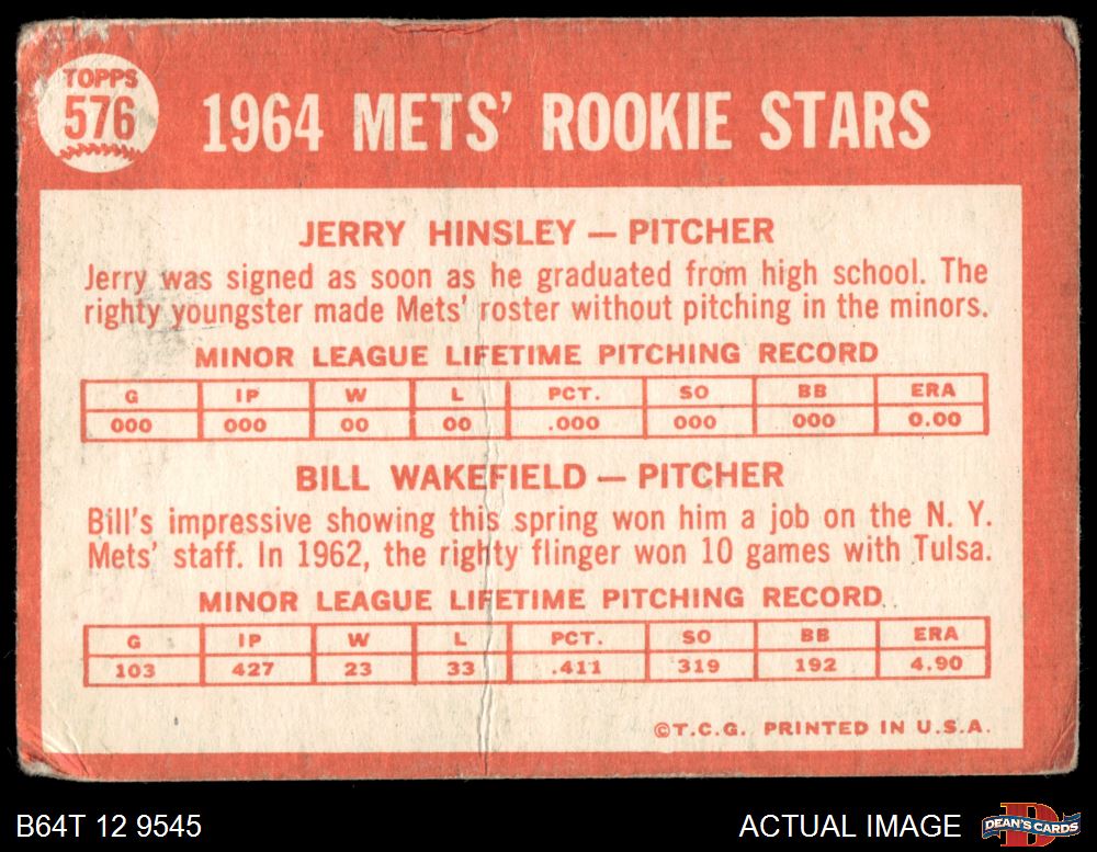 1964 Topps #576 - Jerry Hinsley / Bill Wakefield Mets Rookies 1 - POOR