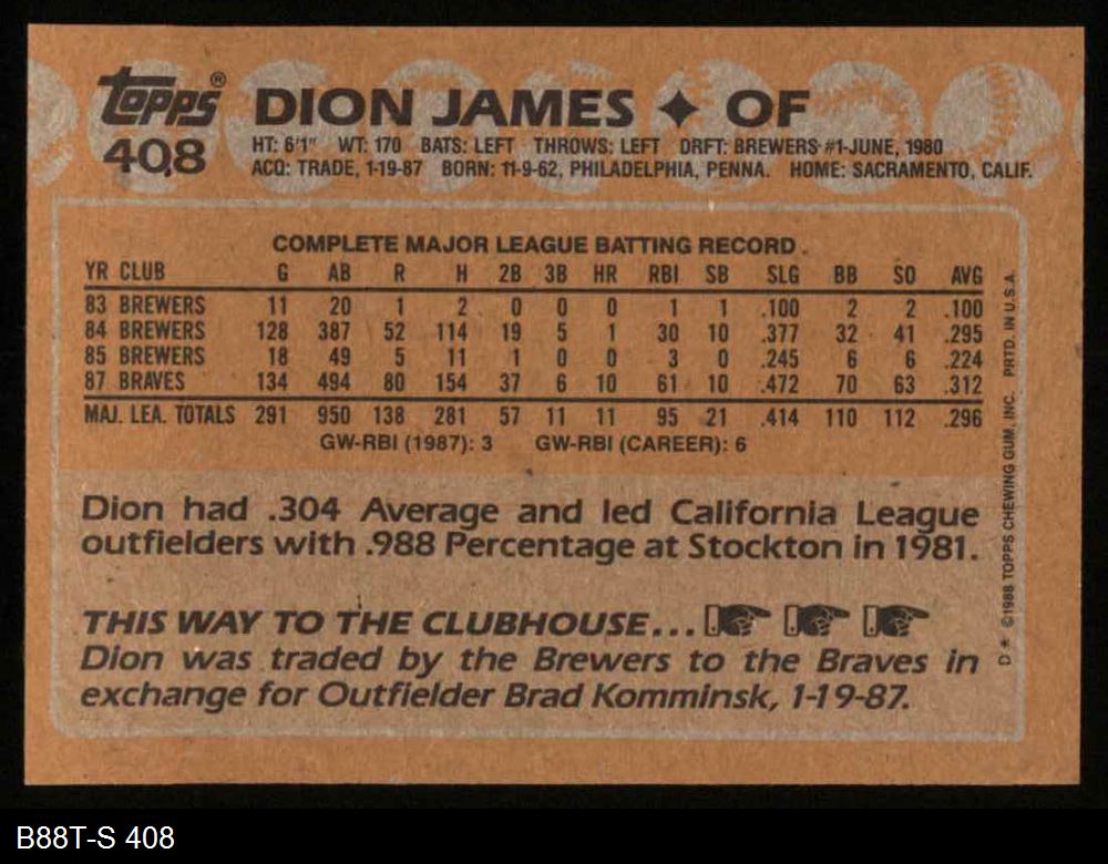 1988 Topps #408 Dion James