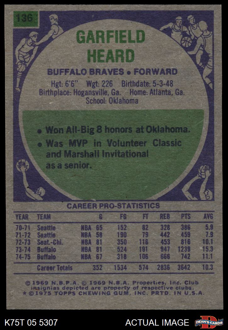 1975 Topps #136 Garfield Heard