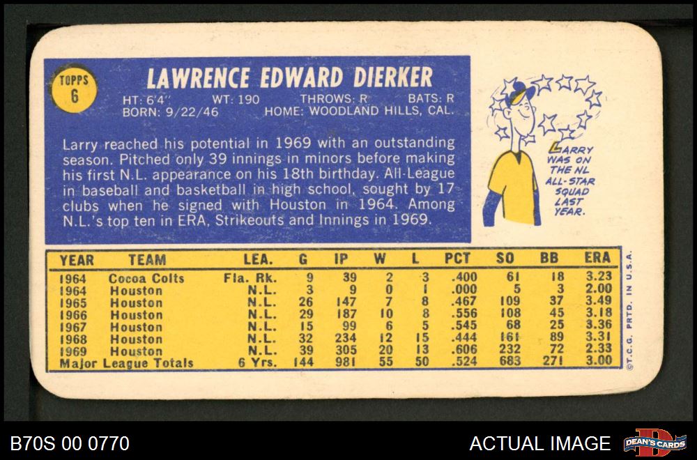 1970 Topps Super #6 Larry Dierker 5 - EX