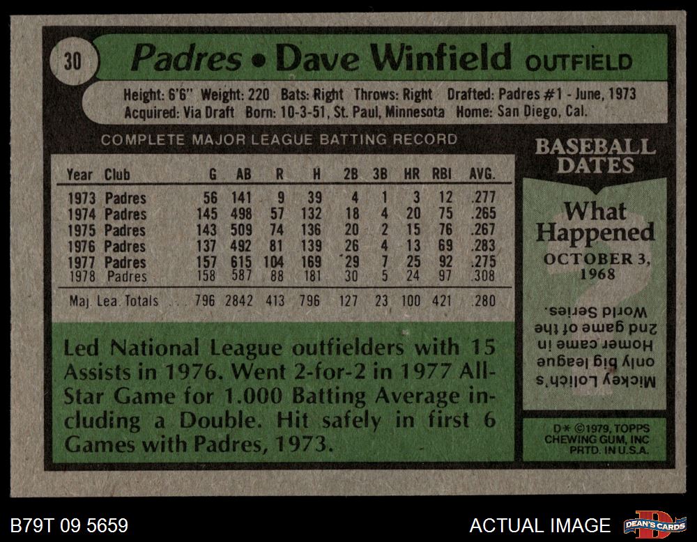 1979 Topps #30 Dave Winfield 4 - VG/EX