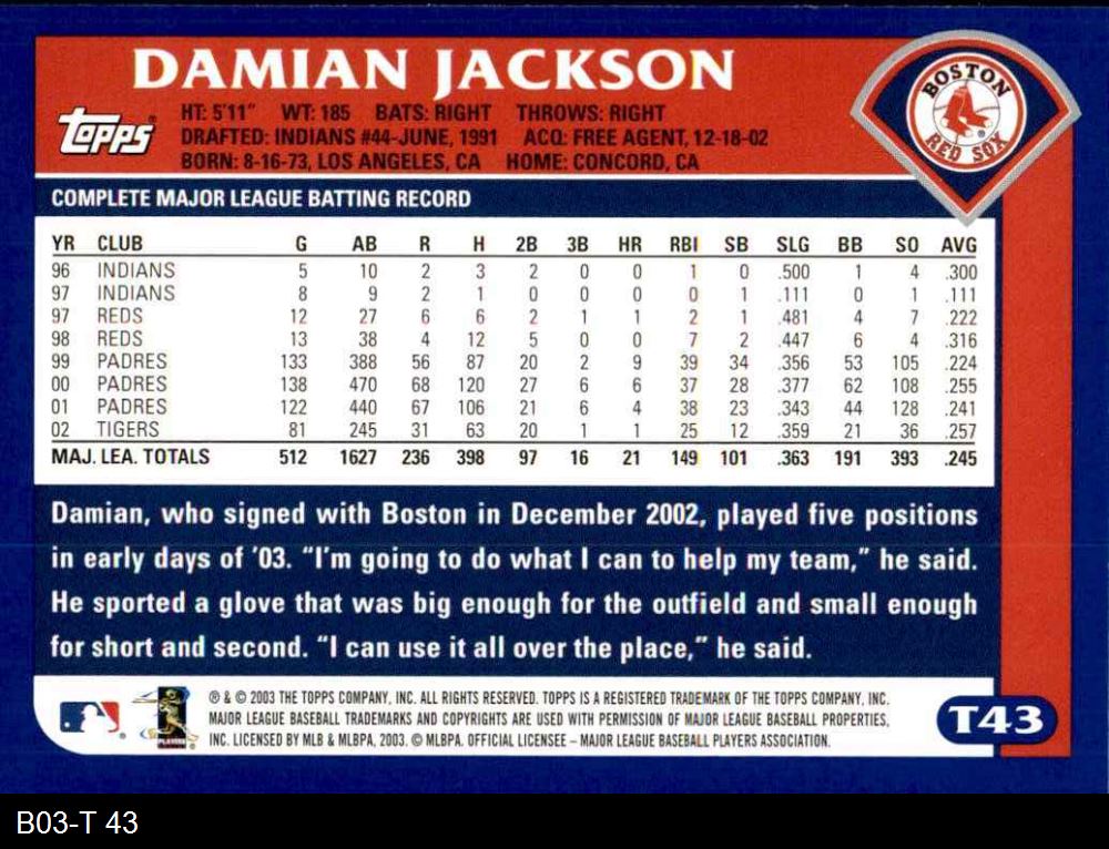 2003 Topps Traded #43 T Damian Jackson 8 - NM/MT