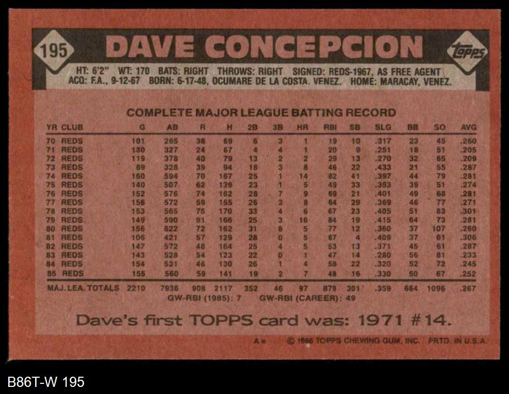 1986 Topps #195 Dave Concepcion 8 - NM/MT