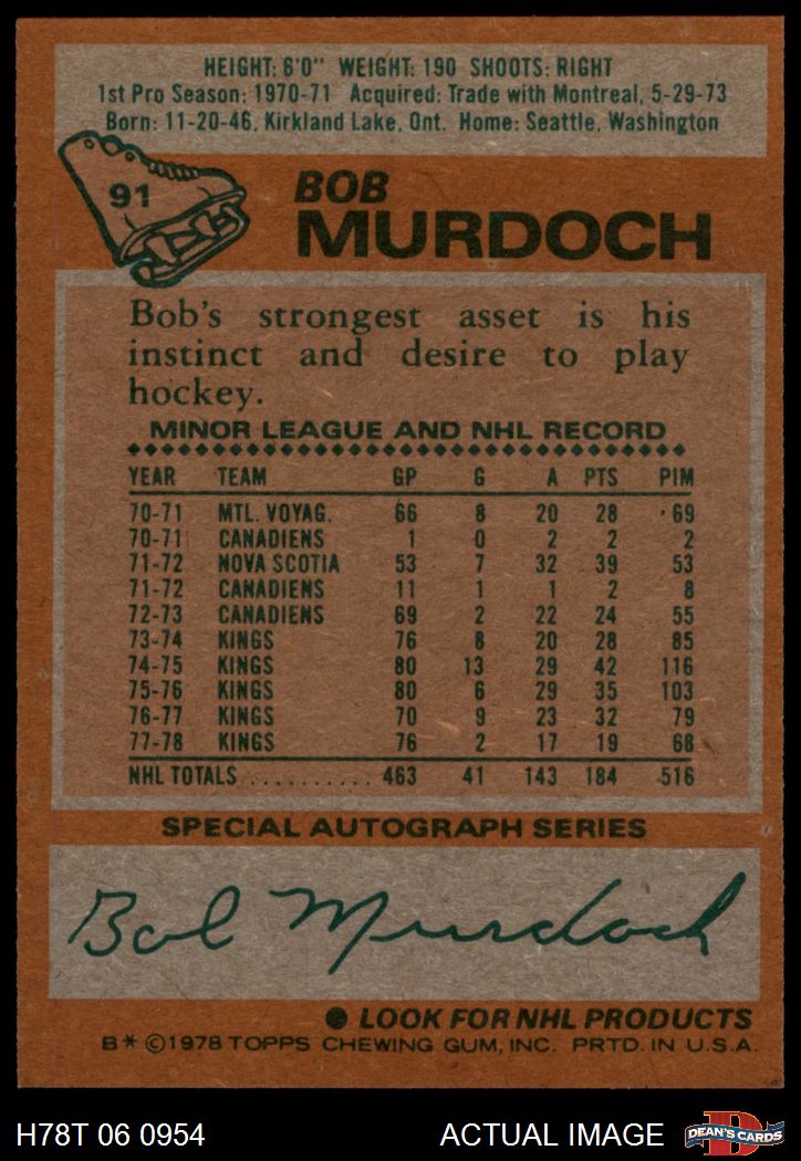 1978 Topps #91 Bob Murdoch 8 - NM/MT