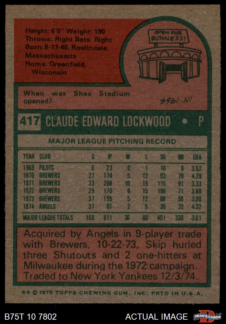 1975 Topps #417 Skip Lockwood 7.5 - NM+