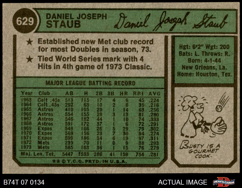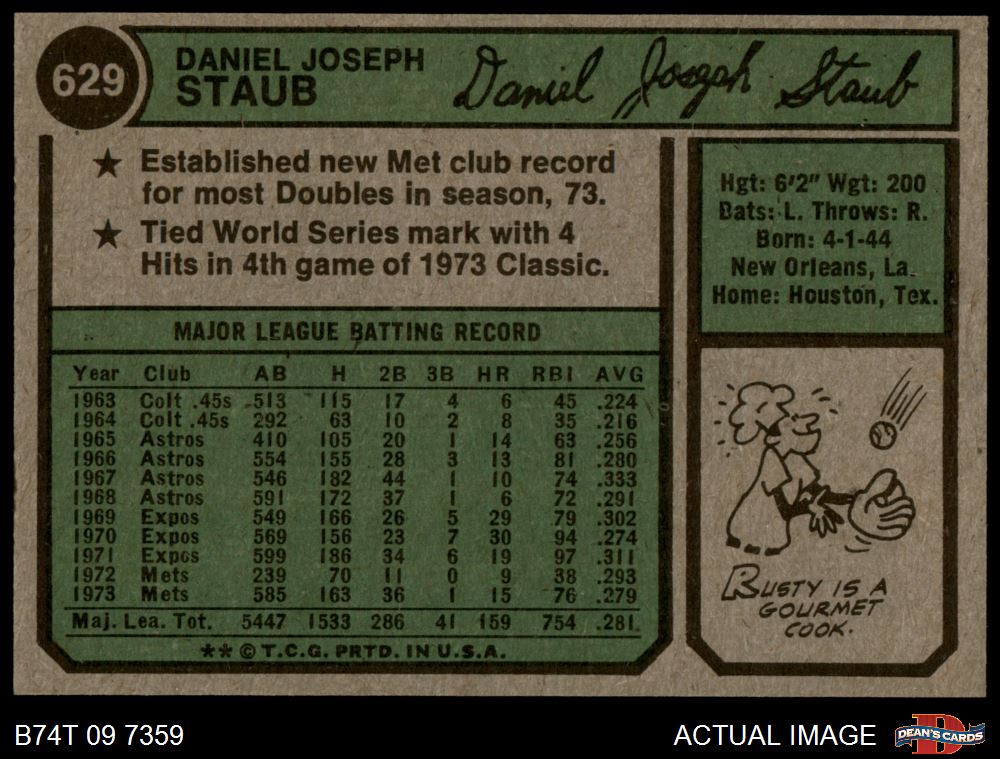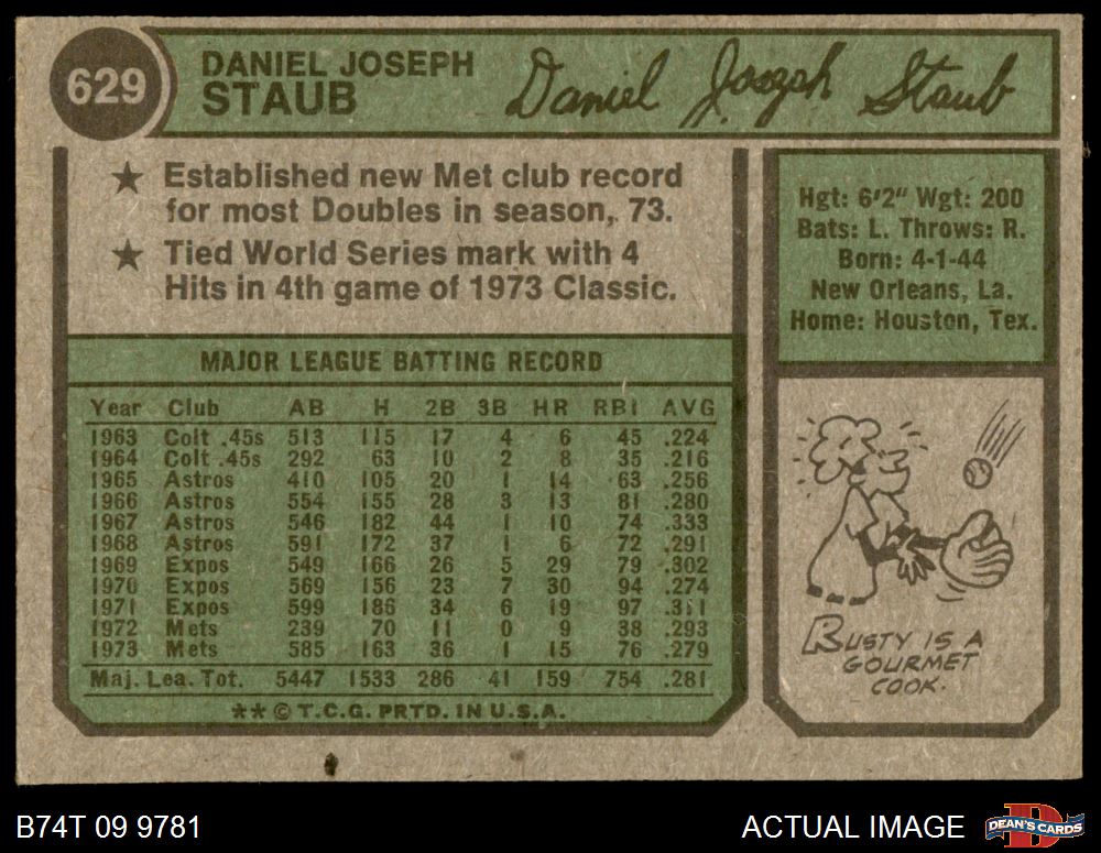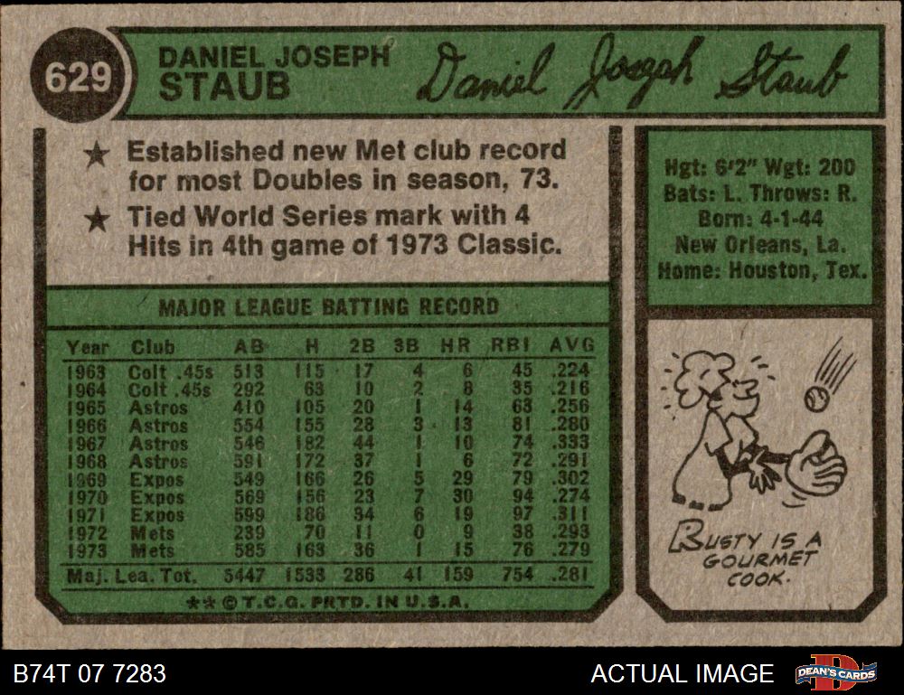 1974 Topps #629 Rusty Staub 6 - EX/MT
