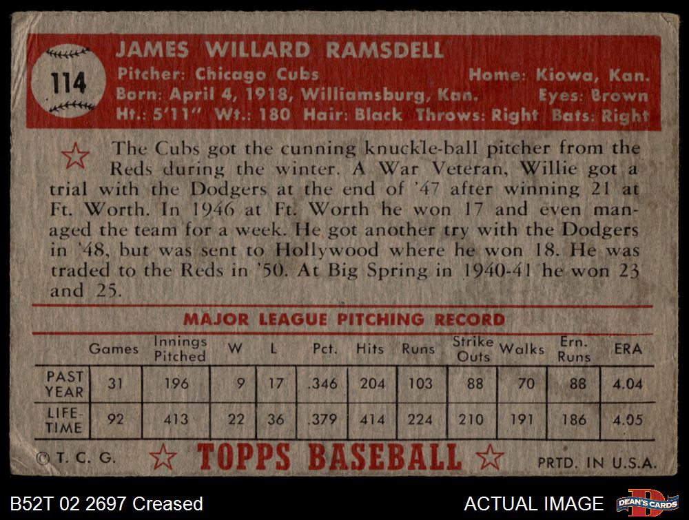 1952 Topps #114 Willard Ramsdell 2 - GOOD