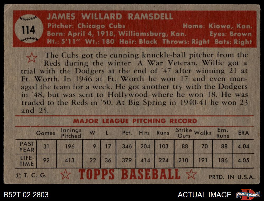 1952 Topps #114 Willard Ramsdell 4.5 - VG/EX+