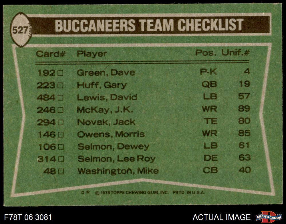 1978 Topps Football Cards (7,394 available)1978 Topps Buccaneers (188 available)