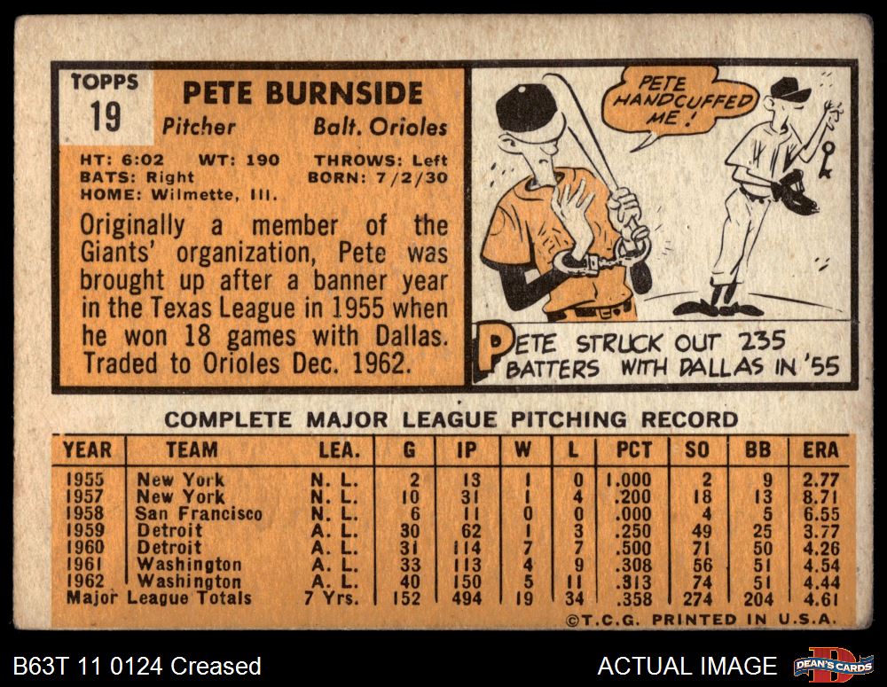 1963 Topps #19 Pete Burnside 1 - POOR