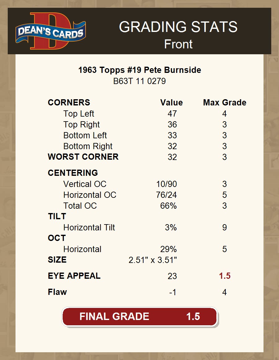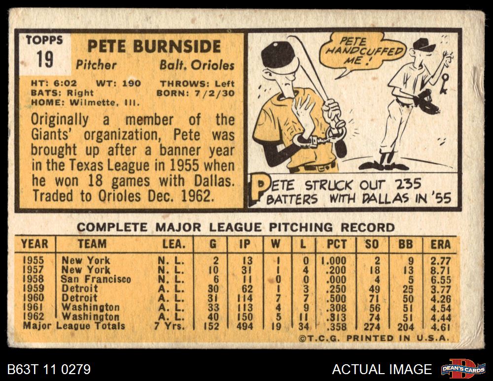 1963 Topps #19 Pete Burnside 1.5 - FAIR
