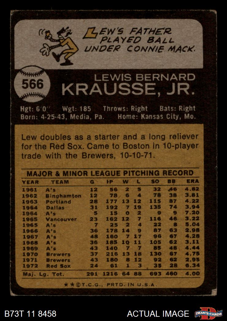 1973 Topps #566 Lew Krausse