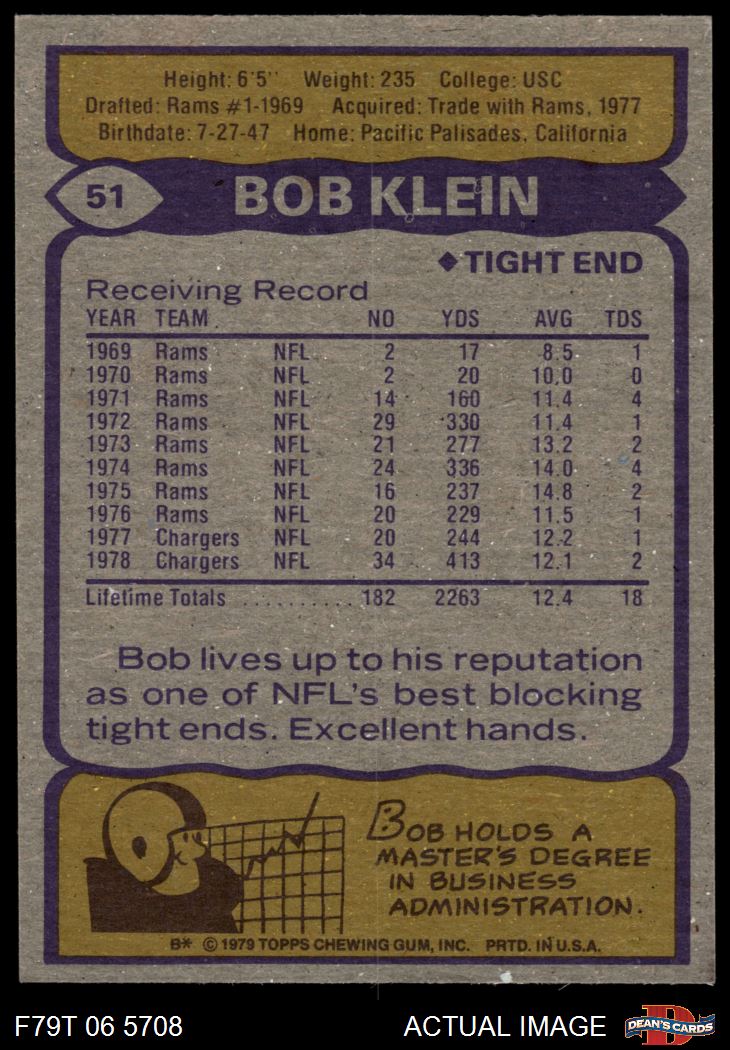 1979 Topps #51 Bob Klein 7 - NM