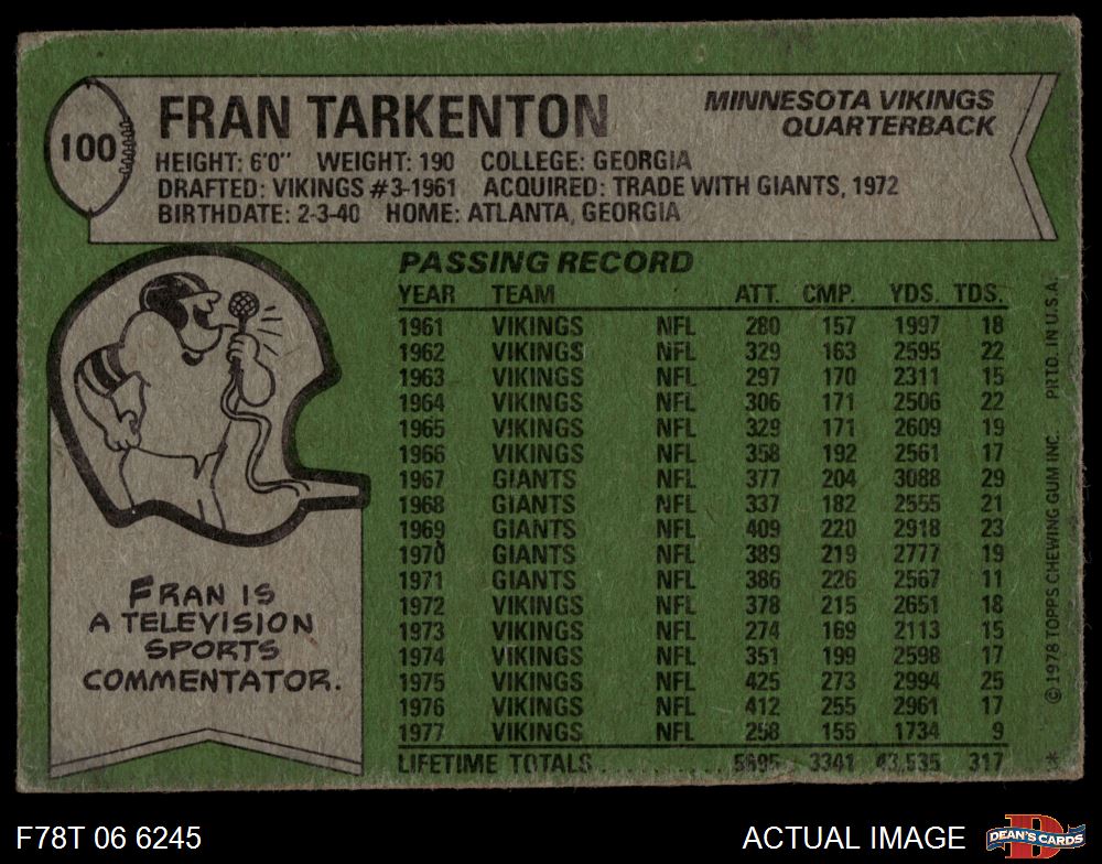 1978 Topps #100 Fran Tarkenton 2 - GOOD