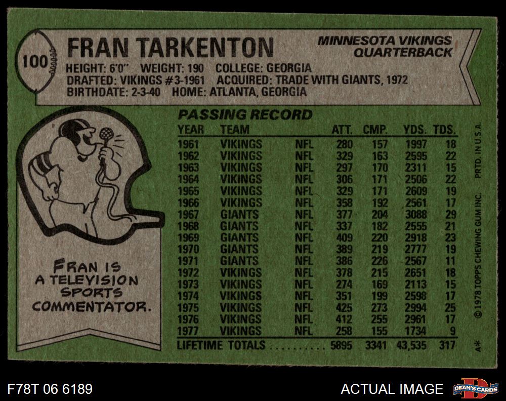 1978 Topps #100 Fran Tarkenton 3 - VG
