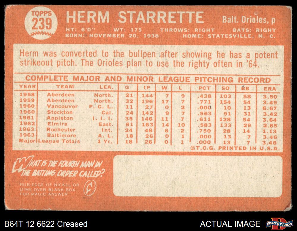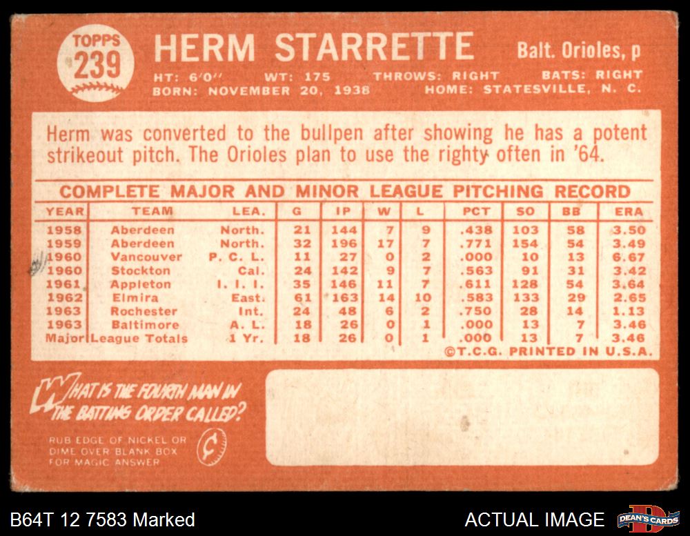 1964 Topps #239 Herm Starrette Front Thumbnail