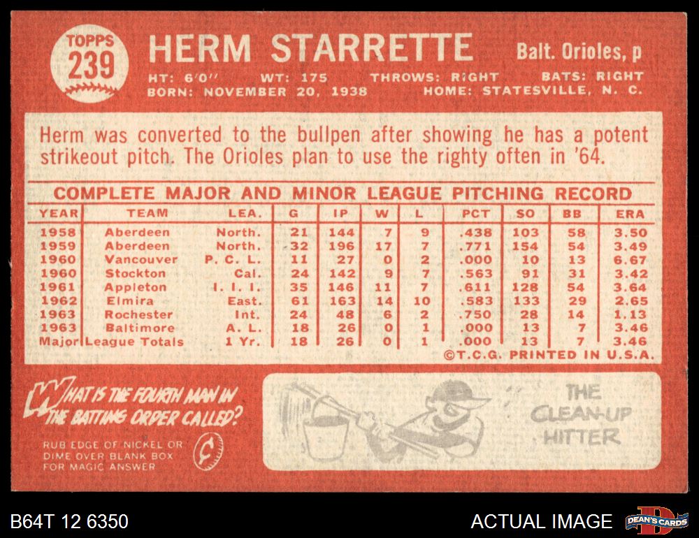 1964 Topps #239 Herm Starrette 4 - VG/EX