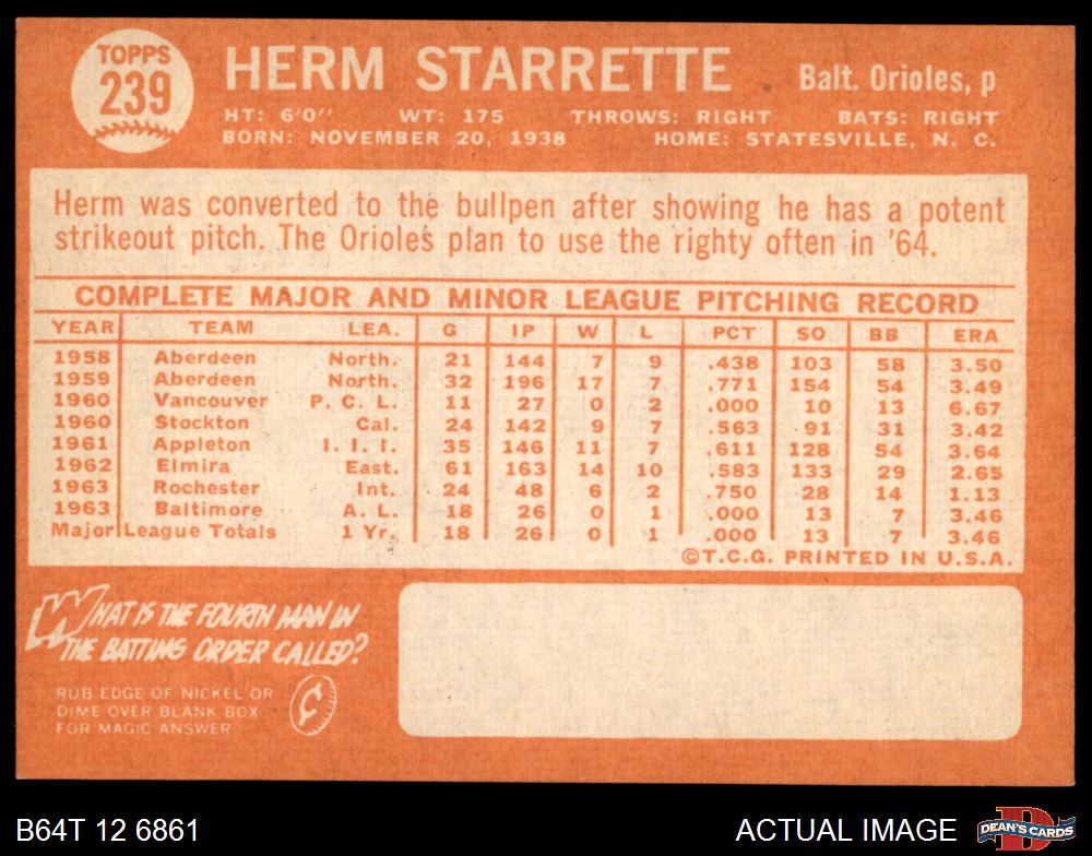 1964 Topps #239 Herm Starrette 5 - EX