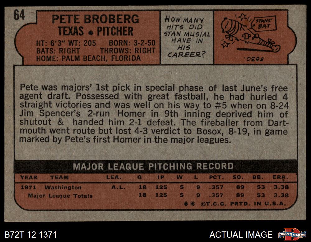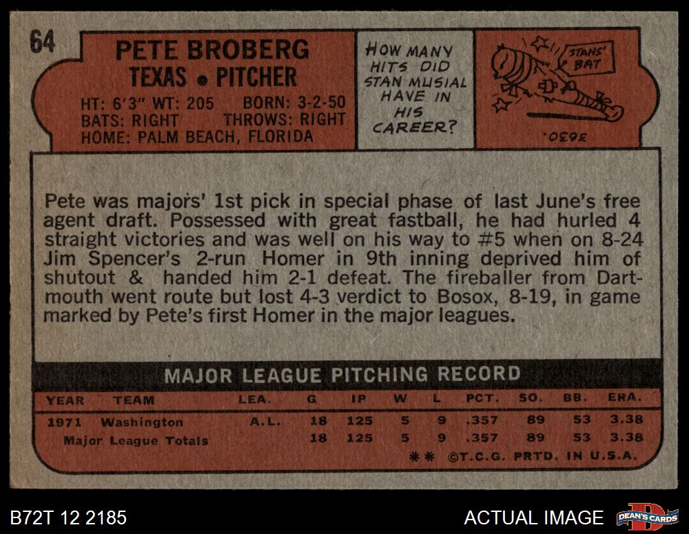 1972 Topps #64 Pete Broberg 6 - EX/MT