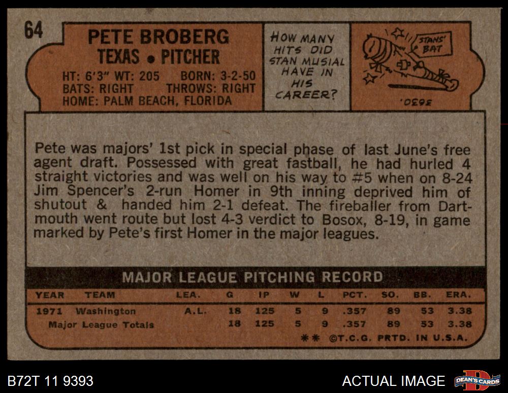 1972 Topps #64 Pete Broberg 7.5 - NM+