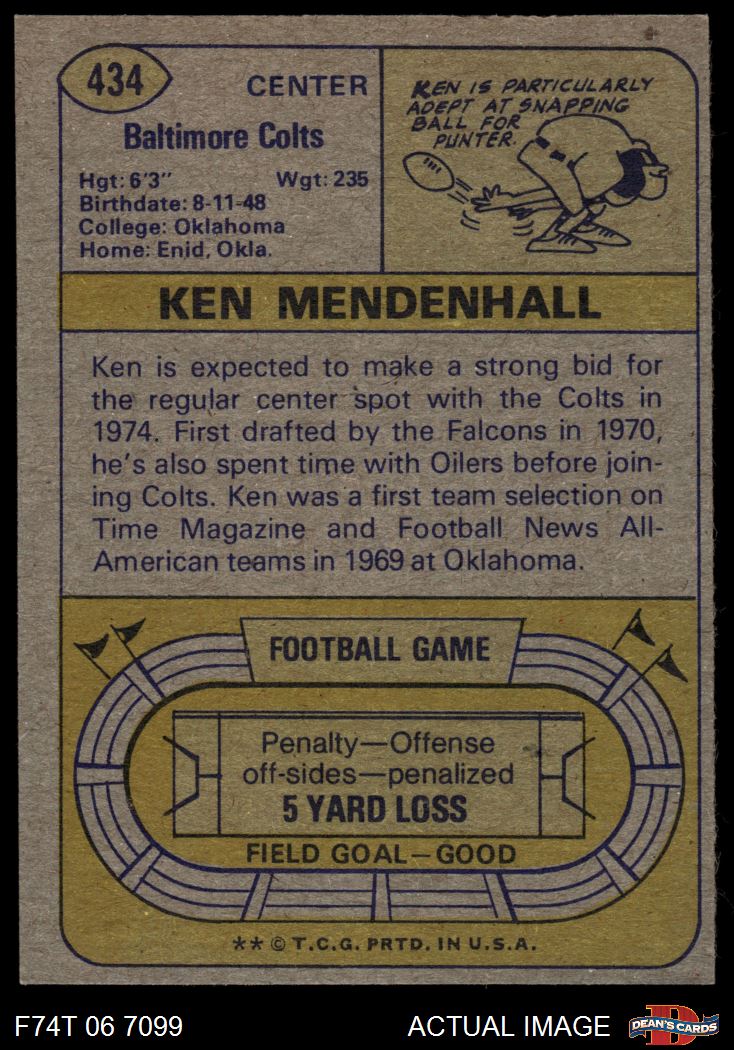 1974 Topps #434 Ken Mendenhall 6 - EX/MT