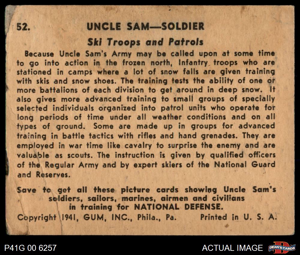 1941 Uncle Sam #52 Ski Troops And Patrols 1.5 - FAIR