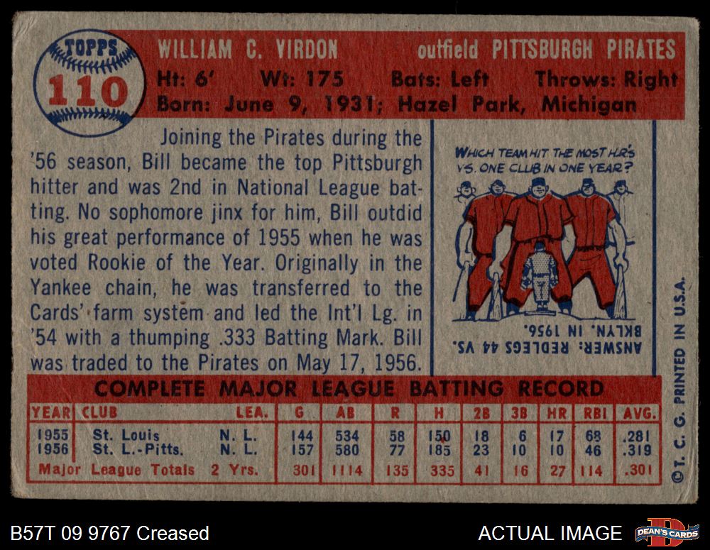 1957 Topps #110 Bill Virdon 2.5 - GD+