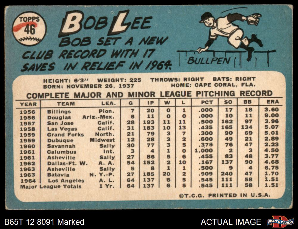 1965 Topps #46 Bob Lee 1.5 - FAIR