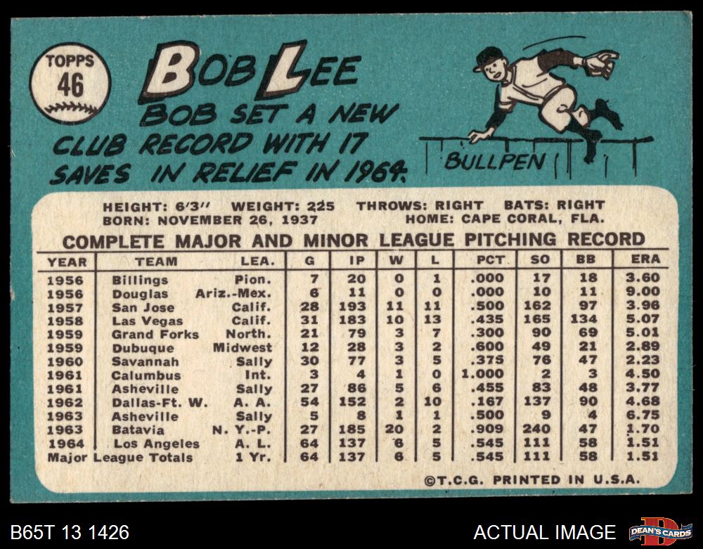 1965 Topps #46 Bob Lee 4 - VG/EX