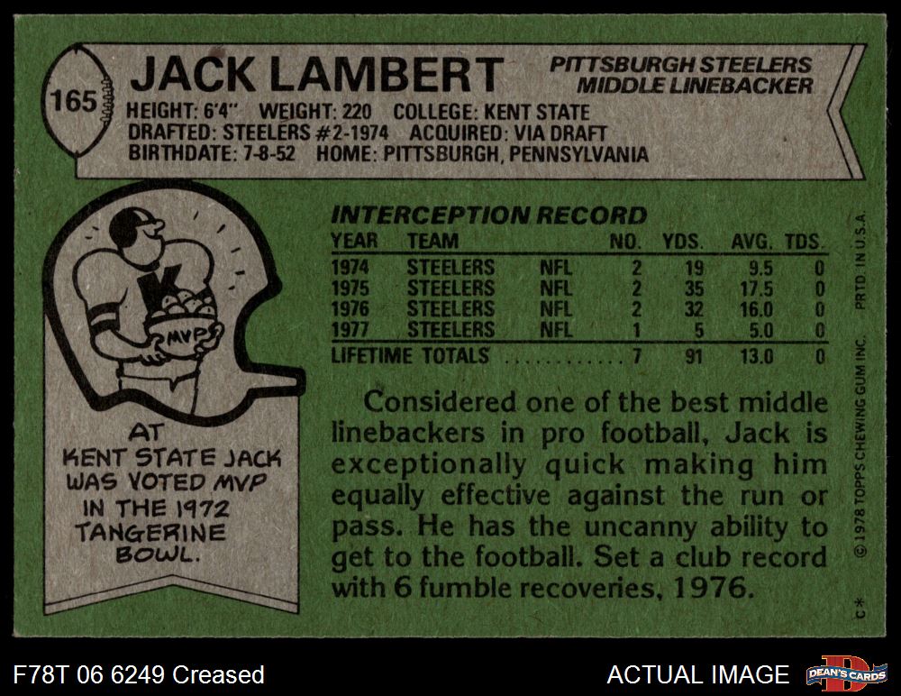 1978 Topps #165 Jack Lambert 3 - VG