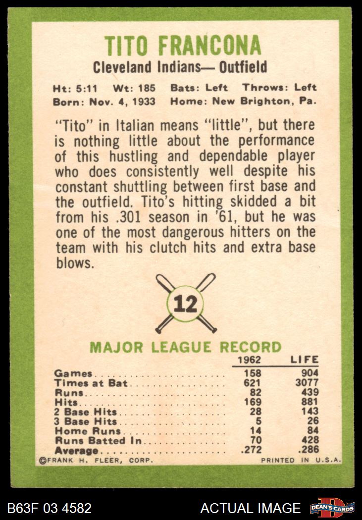 1963 Fleer #12 Tito Francona 4 - VG/EX