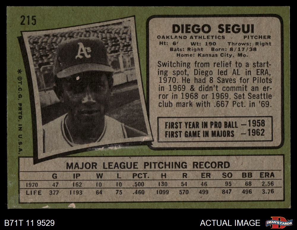 1971 Topps #215 Diego Segui 3 - VG