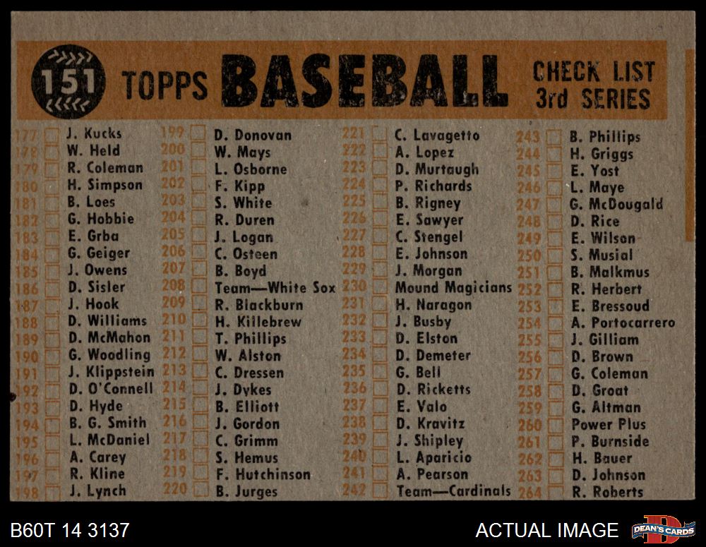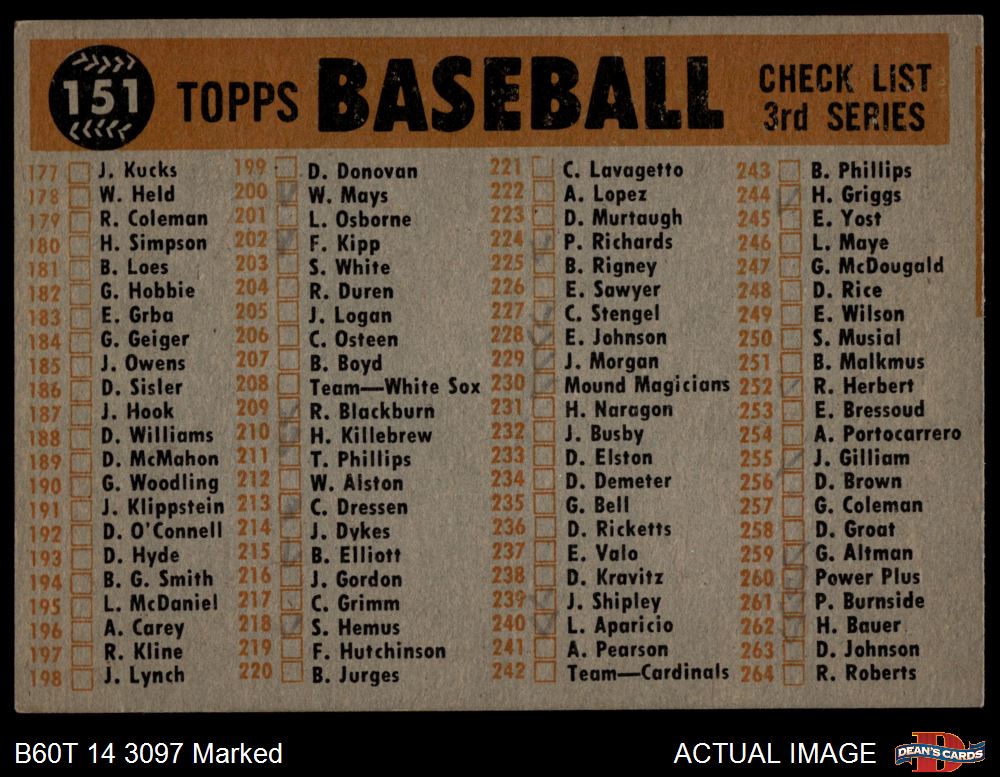 1960 Topps #151 Giants Team Checklist 1.5 - FAIR