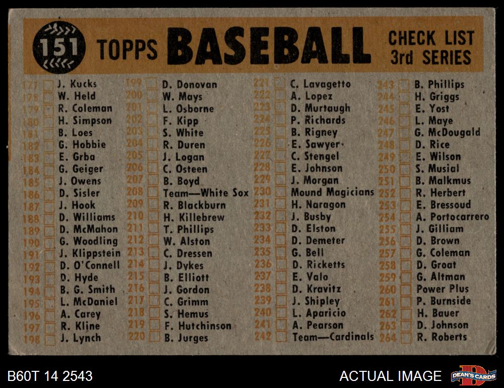 1960 Topps #151 Giants Team Checklist 4 - VG/EX