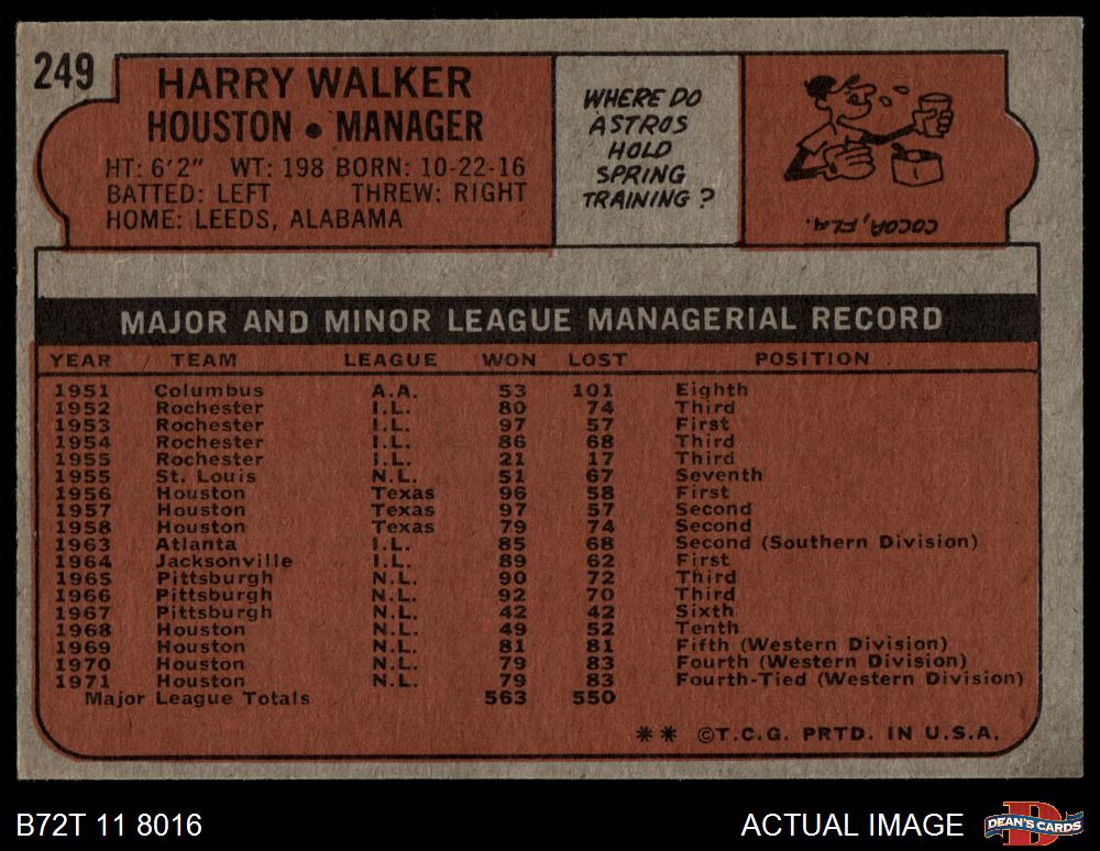 1972 Topps #249 Harry Walker