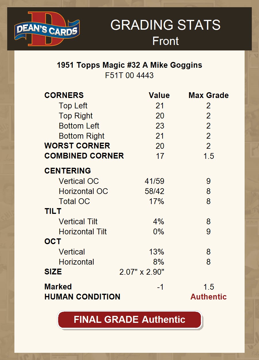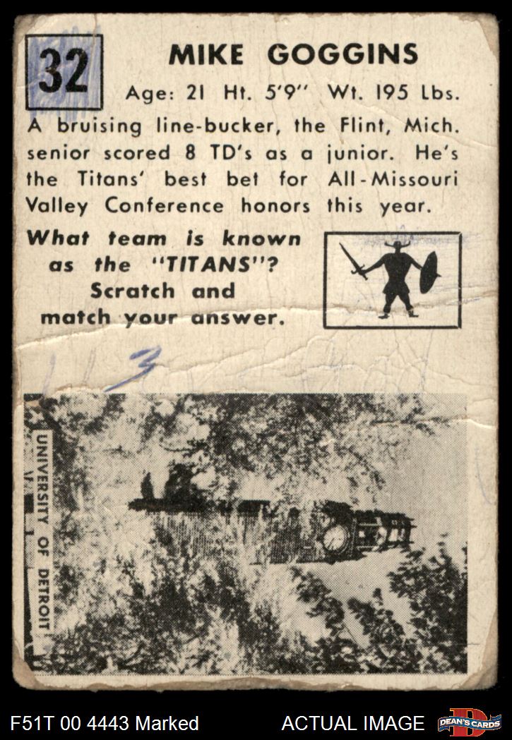 1951 Topps Magic #32 A Mike Goggins AUTHENTIC