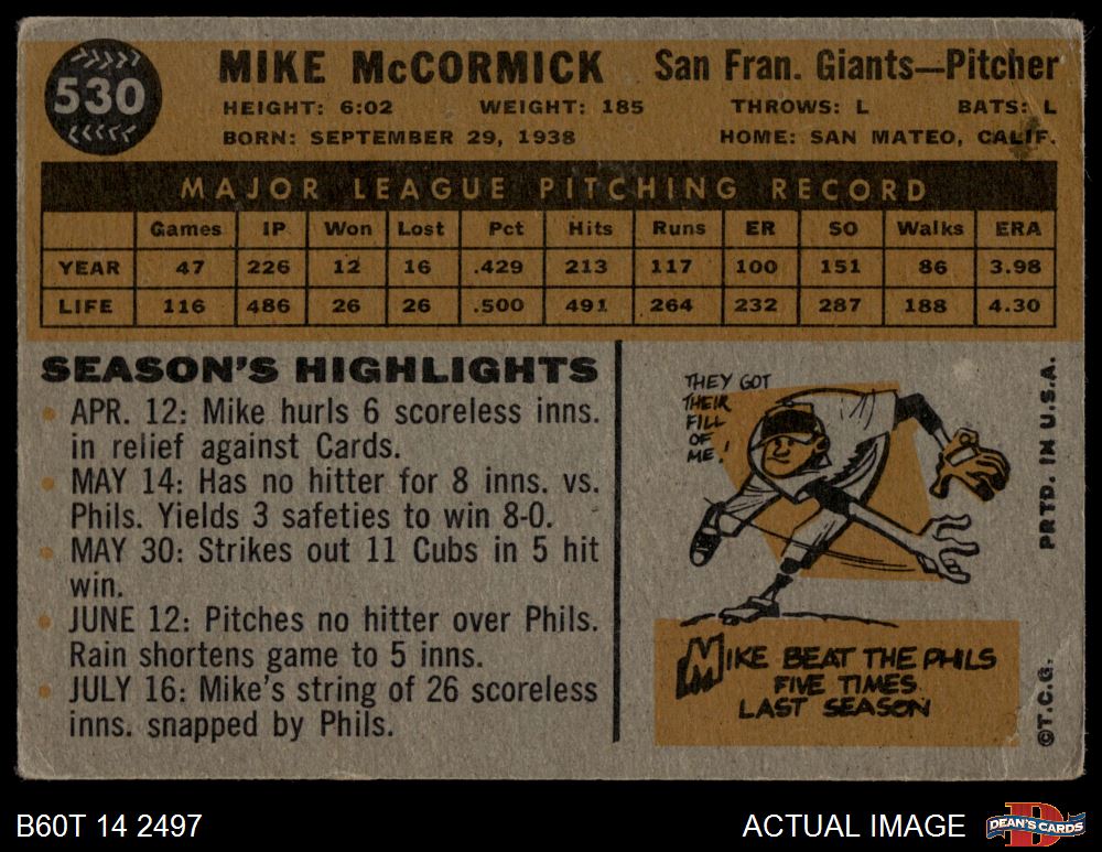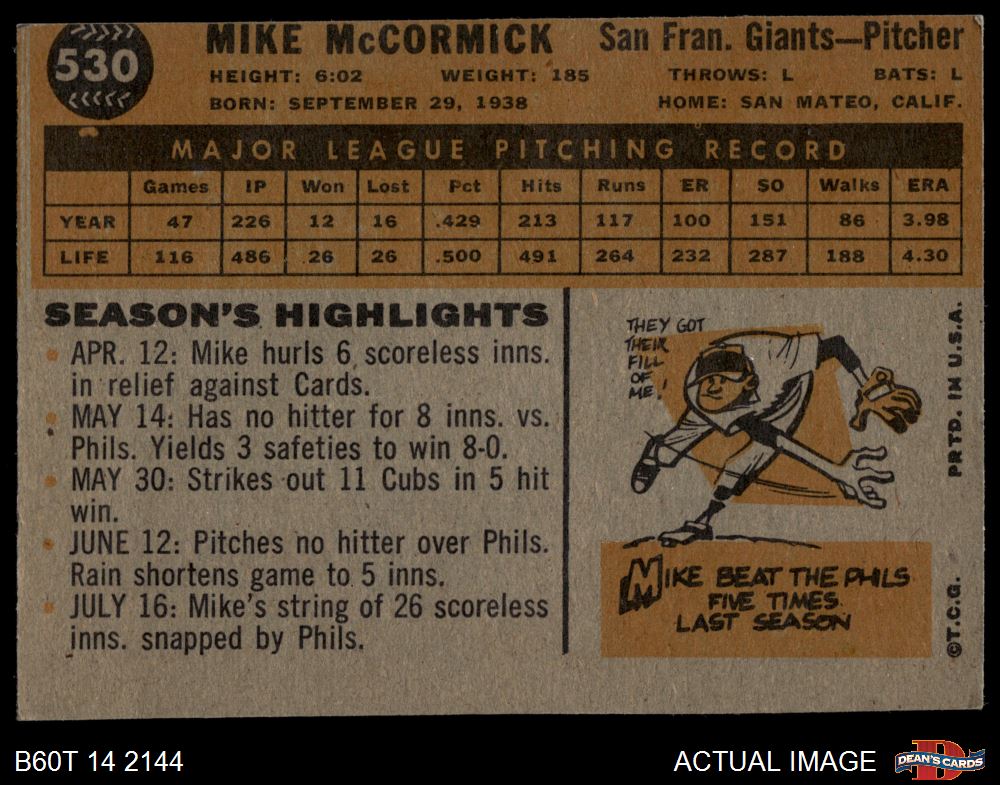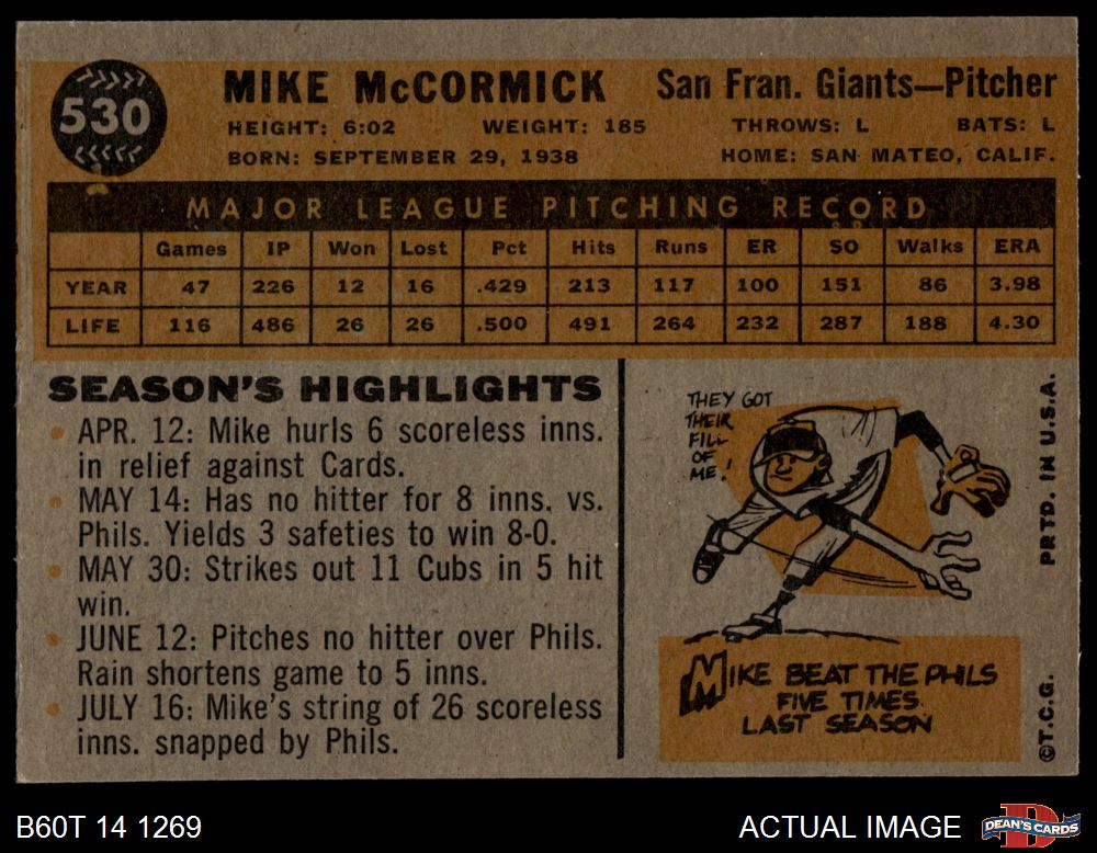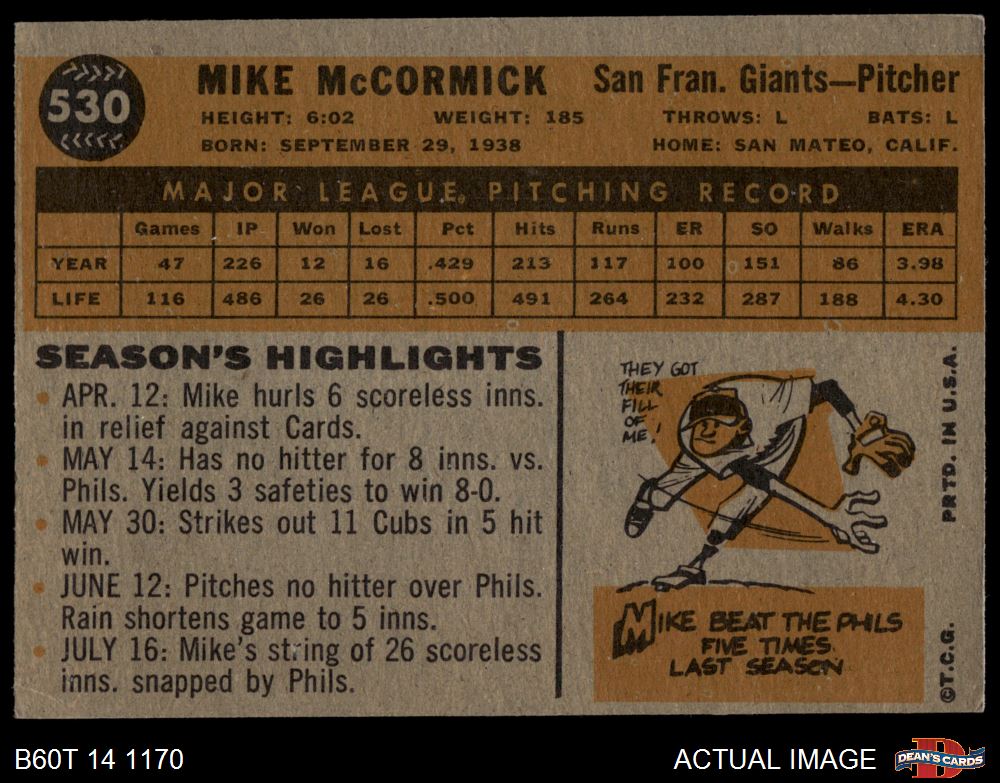 1960 Topps #530 Mike McCormick
