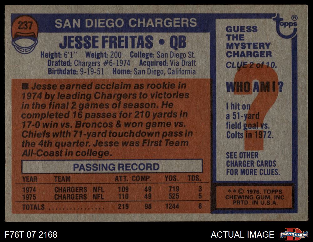 1976 Topps #237 Jesse Freitas 4 - VG/EX