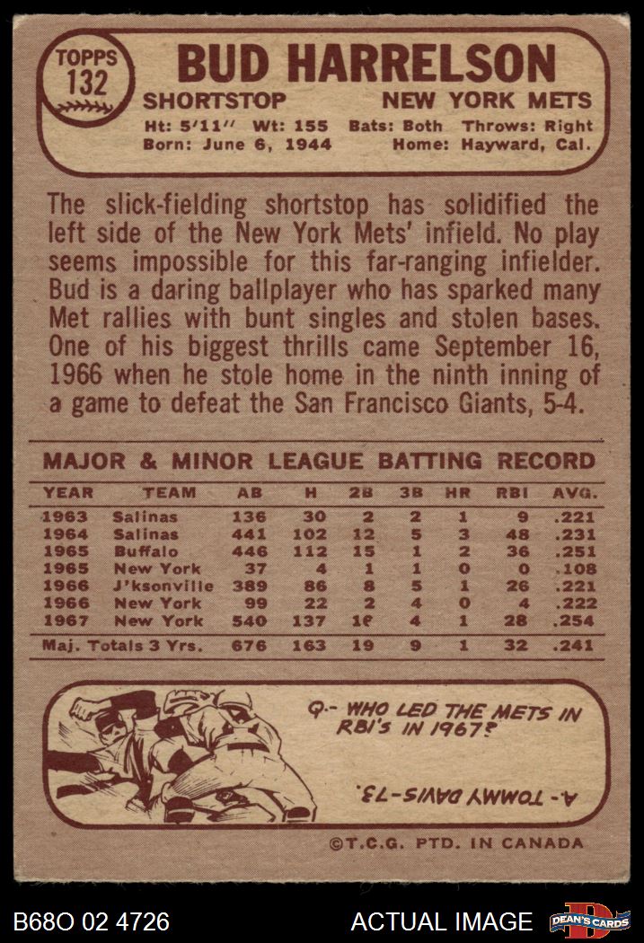 1968 O-Pee-Chee #132 Bud Harrelson 4.5 - VG/EX+