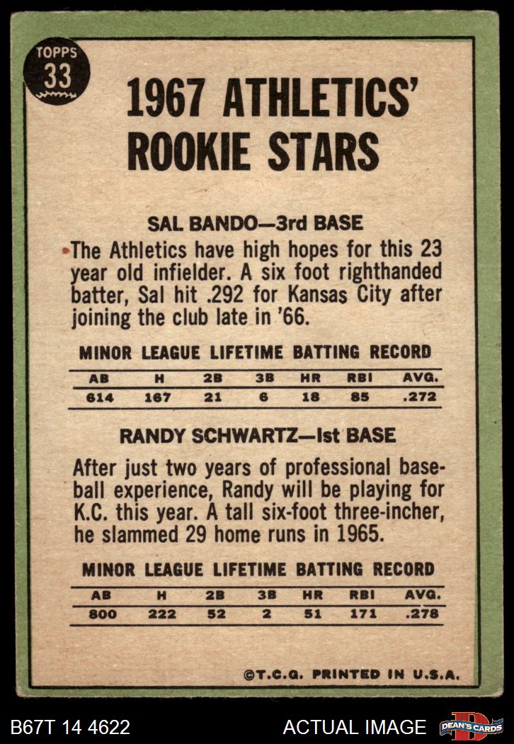 1967 Topps #33 - Sal Bando / Randy Schwartz Athletics Rookies 2 - GOOD