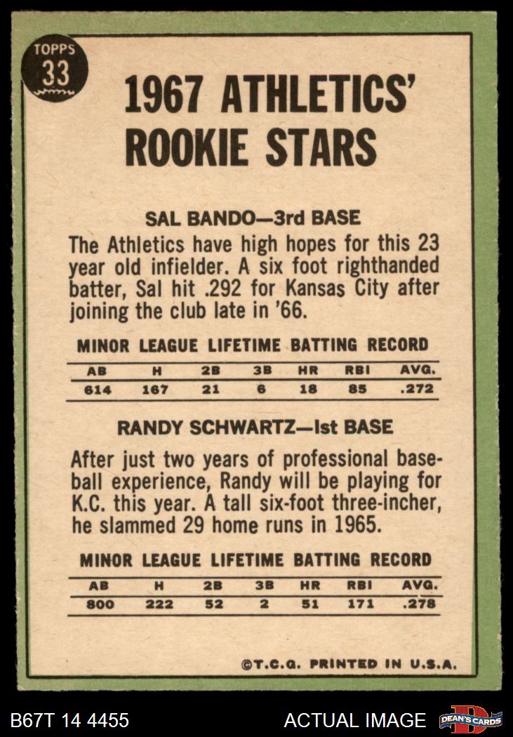 1967 Topps #33 - Sal Bando / Randy Schwartz Athletics Rookies 5 - EX