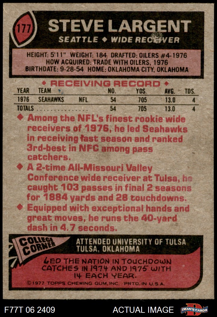1977 Topps #177 Steve Largent 7 - NM