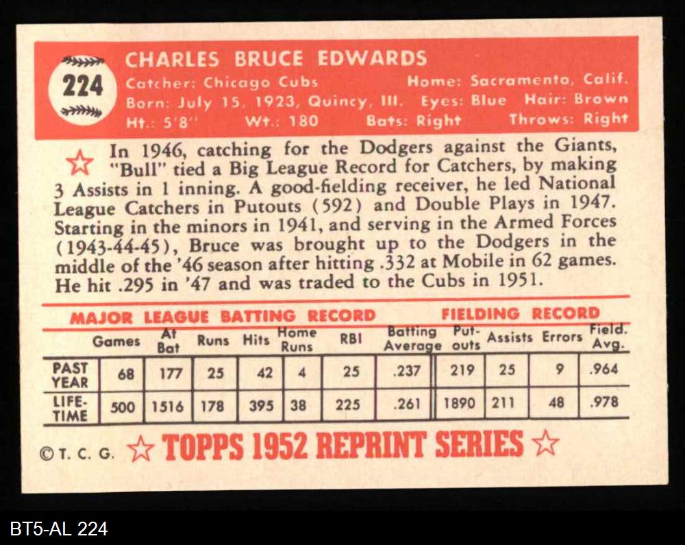 1952 Topps REPRINT #224 Bruce Edwards 8 - NM/MT