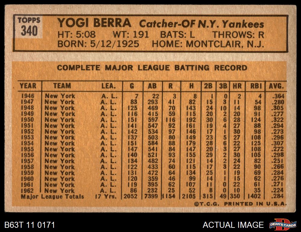 1963 Topps #340 Yogi Berra 4 - VG/EX