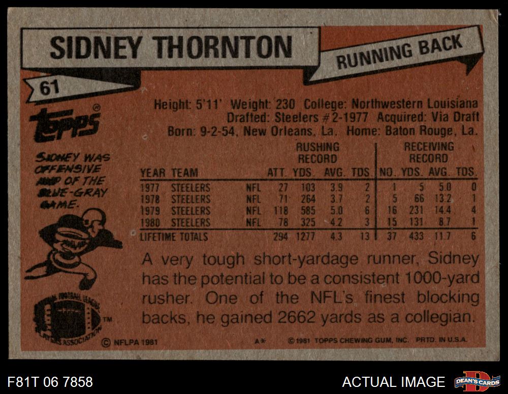 1981 Topps #61 Sidney Thornton 6.5 - EX/MT+
