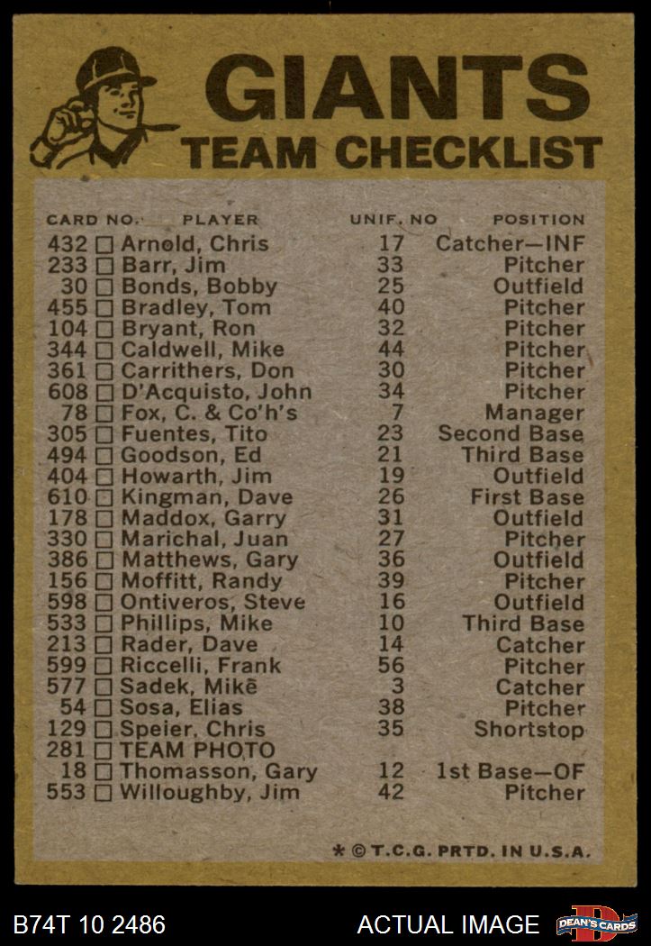 1974 Topps Baseball Cards (16,091 available)1974 Topps Red Team Checklist Giants (61 available)