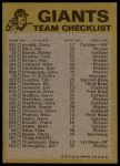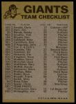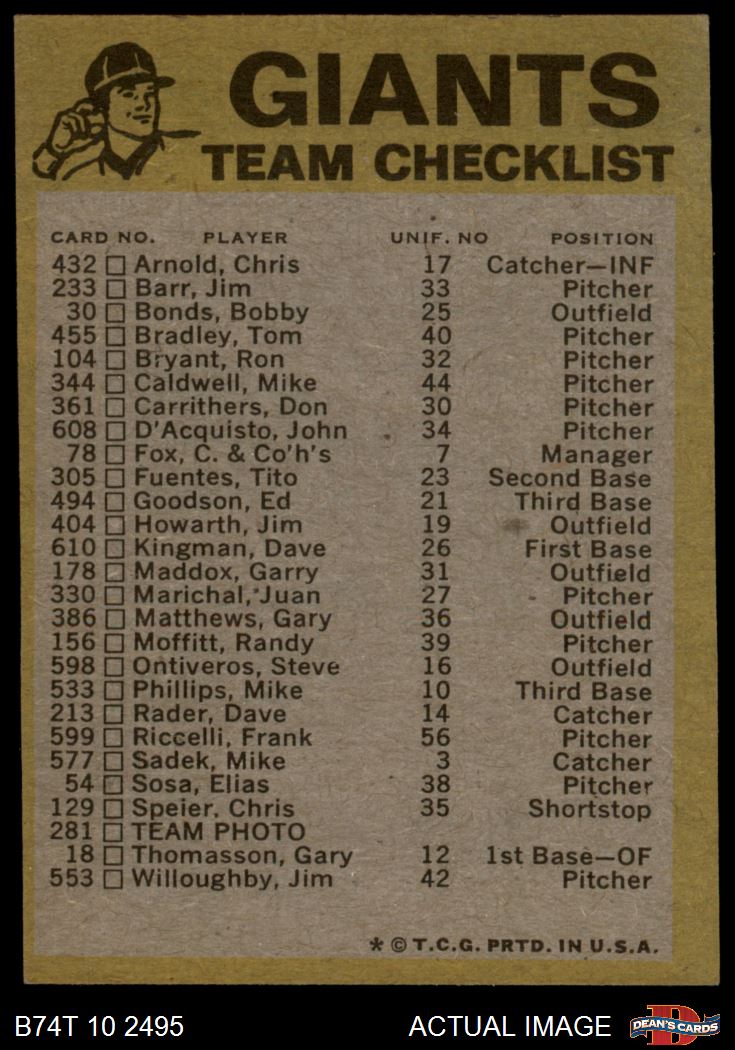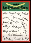 1974 Topps Red Team Checklist San Francisco Giants Red Team Checklist