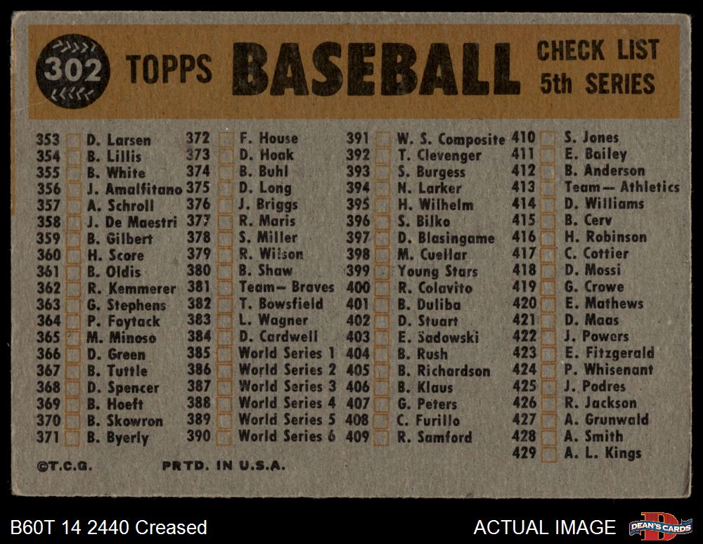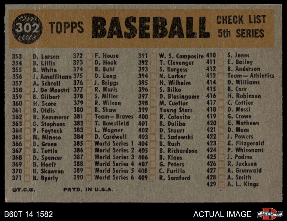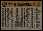 1960 Topps #302 Phillies Team Checklist 2 - GOOD