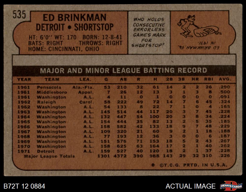 1972 Topps #535 Ed Brinkman 4 - VG/EX