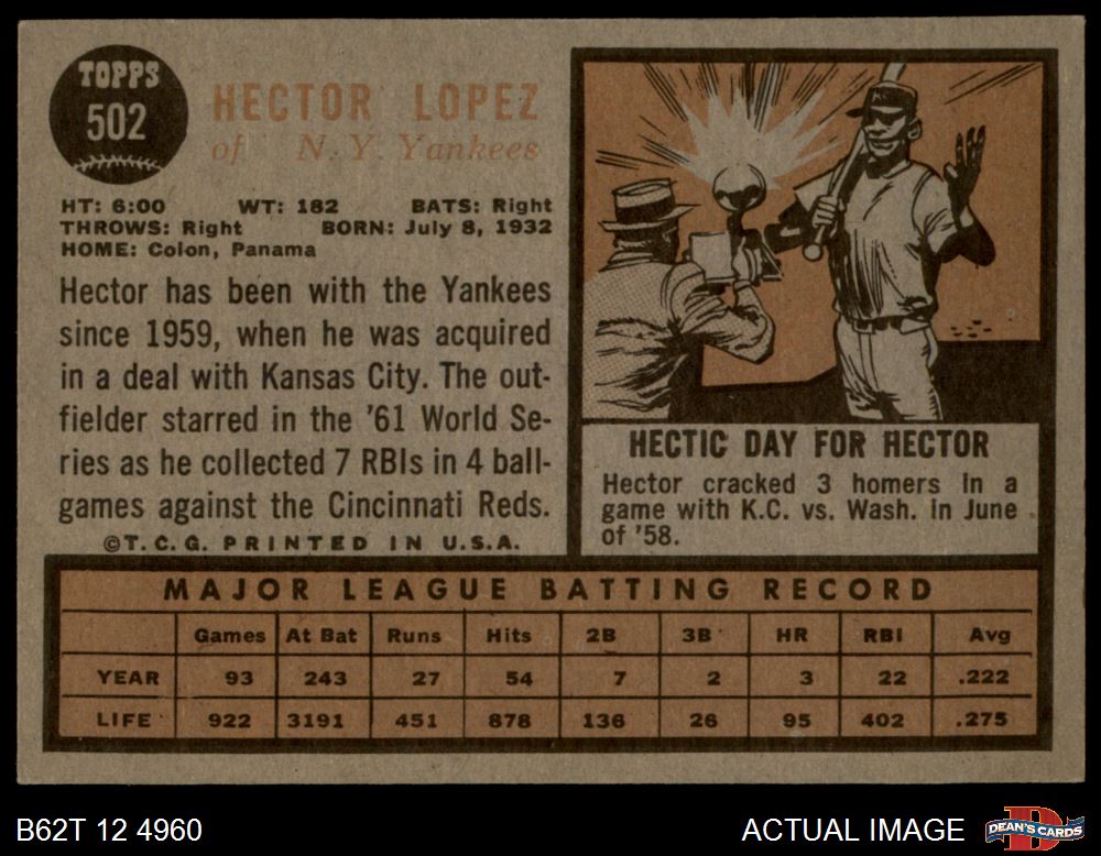 1962 Topps #502 Hector Lopez 4 - VG/EX